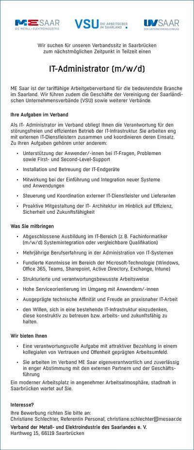 ME Saar sucht IT-Administrator/in (m/w/d)